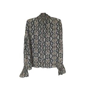 Multicolor, snakeskin print, stretchy mock neck, long sleeve with ruffle cuffs, blouse