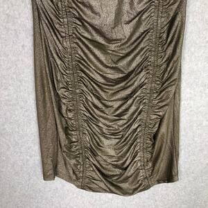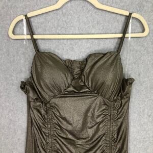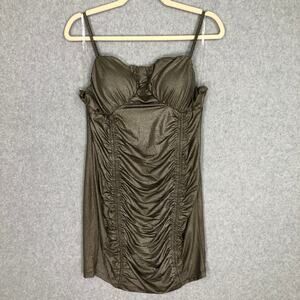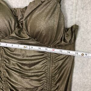 Shinestar Dress Womens Large Bronze Metallic Sparkly Tight Party Futuristic Club Mini Cocktail Club Going Out Tight Fitted Party Bodycon Sweetheart Short Ruched Pleated Stretch