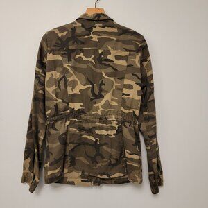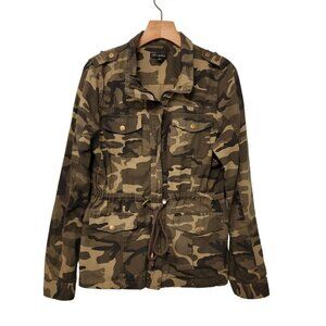 Shinestar Camo Utility Jacket Pockets Full Zip Cinch Waist Spring Fall Sz L