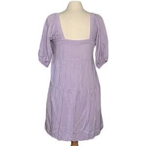 Shinestar Lavender Square NeckLine Balloon PuffSleeve Tiered Flowy MiniDress C17