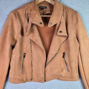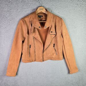 Shinestar Moto Faux Suede Jacket Medium Camel Tan Stretch Cropped Trend Y2K