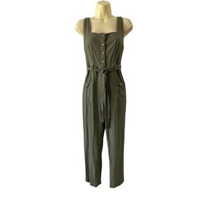 Shinestar Olive Green Belted Jumpsuit Linen Blend Size Medium Boho Grunge