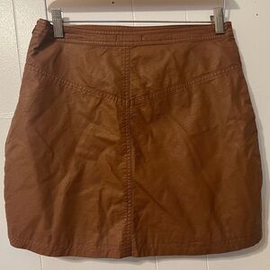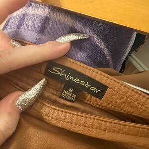 Shinestar Short Mini Wrap Skirt Size Large Brown Vegan Leather Lined Side Zip
