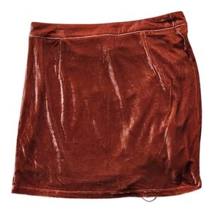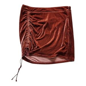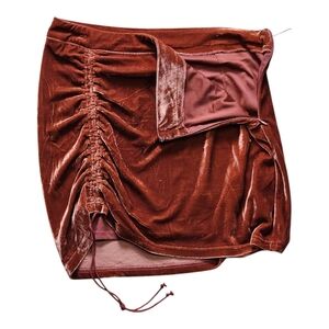 Shinestar Velvet Ruched Mini Skirt Rust Large Adjustable Drawstring Party NEW