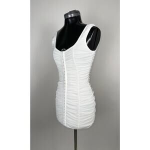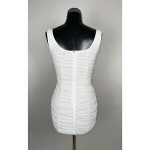 Fitted white mini dress with all-over ruching. Simple and clean — easy to dress up or layer under a jacket. Excellent condition.