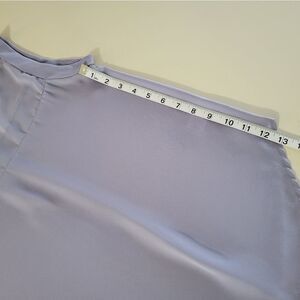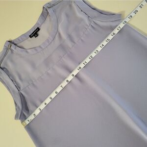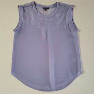 This pretty top is a great option when a tank isn't dressy enough! Silky-smooth and flirty shoulder zippers, you will love this lavendar blouse for both work and play. Excellent condition.