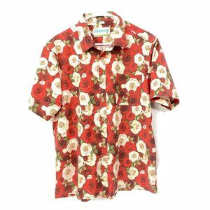 Shinesty Men's Large Hawaiian Party Shirt w/ Can Holder Floral Mahalo Nerds