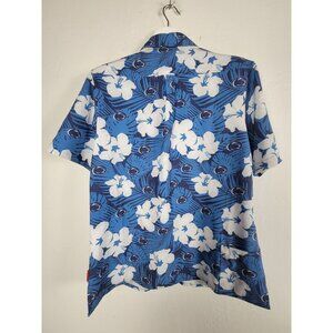 Shinesty Mens Woven Hawaiian Shirt Large Blue Tropical Floral Button-Up New $65
