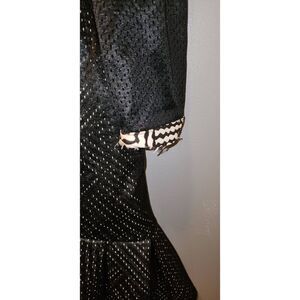 1 of 1 custom designed long sleeve mesh dress has zippered back and fully lined complementary coordinating fabric.