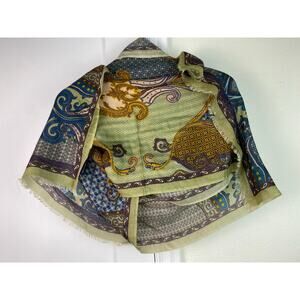 Shingora Women's Green Paisley Fringed Wool Silk Blend Rectangular Boho Scarf. Pre-owned in good condition. Measures 70"L X 21"W.