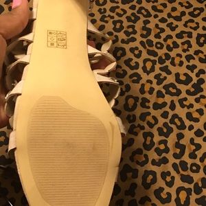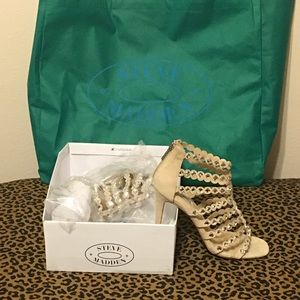 Blush/Nude colored heels with straps that cross the feet from the toes to ankles. The straps are accented with sparkling diamonds. NWT