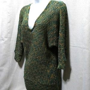 Shining Bright SWEATER Teal Tan Gold Silver Metallic Threads S/M Handmade