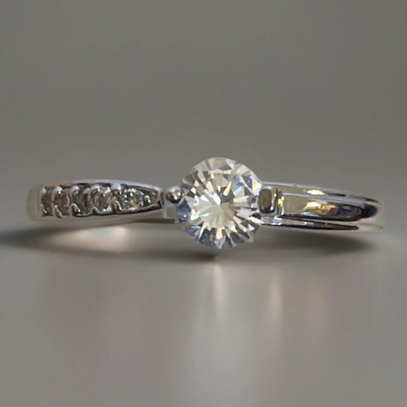 Shining Silver Tone Clear Stone Solitaire with 5 Side Stones Ring Size 8.75