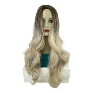This is a Shining Yourself by HAIRCUBE Women's Brown/Blonde Balayage Curled Wig