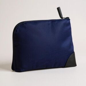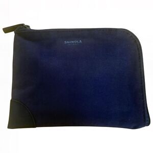 • Premium Materials: Navy canvas exterior with black faux-leather trim, inspired by Shinola’s signature wristlet wallet design
