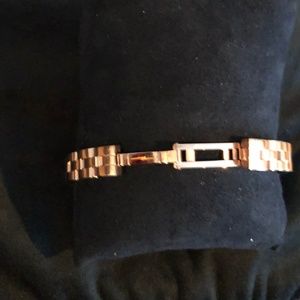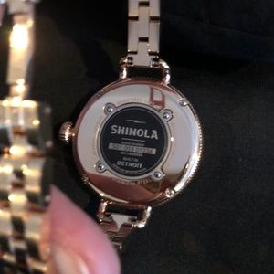 Purchased early 2018. Women's Rose Gold Birdy with mother of pearl watch face and date. Watch retails for $525 and is shown here with a textured leather double strap in a dark burgundy that complements the watch face with elegance. This shipment will also include everything shown in the second photo - 8mm rose gold bracelet ($175) with the three extra links, and navy leather strap ($95). The bracelet has minor scuffing near the clasp. New condition for double strap, very light use blue strap.