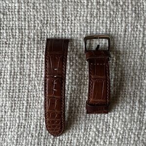 Shinola Detroit- Elegant brown Alligator leather watch strap with silver buckle. Perfect for a sophisticated look. Stock photo is closest I could find to reflect style. Watch band has some signs of wear . Size 24mm.