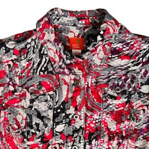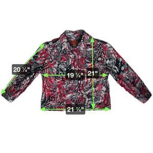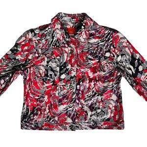 Hearts of Palm Shiny Abstract Print Jacket Women's Size 14 Red Purple Black Bling Going Out Party