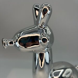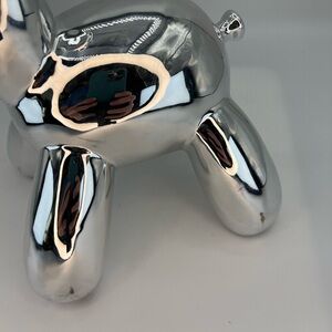 Shiny Balloon Dog Sculpture Silver Resin Dog Statue Mid Century Modern Style. SOME WEAR DUE TO AGE. SEE PHOTOS