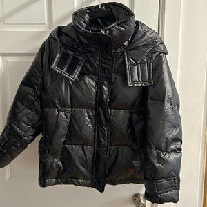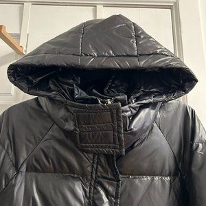 Shiny Black Puffer with Hood