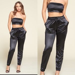 Shiny Black Tube top pant large 2 pc set