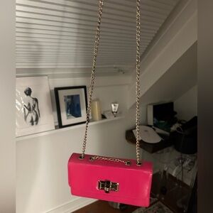 Shiny Bright Pink Crossbody or Shoulder Bag Gold Chain
