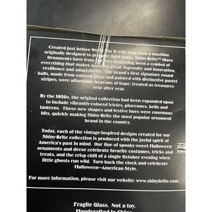 The ornaments feature various Halloween-themed designs and come from the Shiny Brite collection by Christopher Radko. They were manufactured in 2023. These glass ornaments are perfect for collectors and those who want to add a touch of nostalgia to their holiday decor.