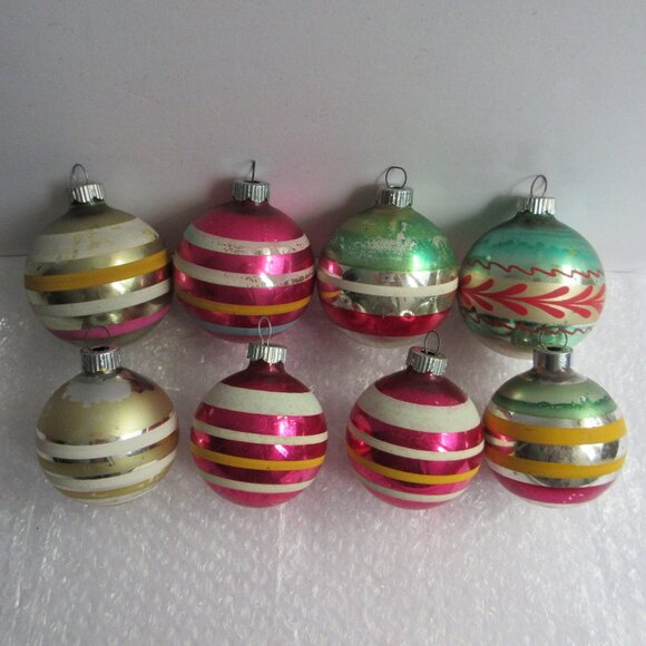 Vintage lot of 8 Shiny Brite Striped Glass Christmas Ornaments
