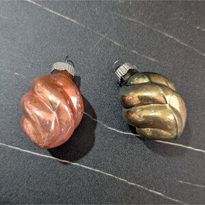 Shiny Brite Xmas Ornaments Pair Swirl Style Gold & Pink Glass Vintage 2"