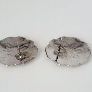 Shiny Chrome Plated Concho Detailed Earrings Pierced 1"