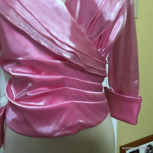 Beautiful shiny fabric women's cropped blouse w/ ruched SLIMMING waist.