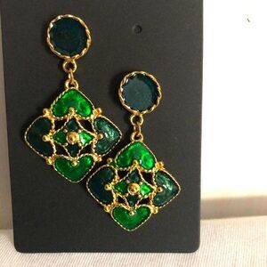 Shiny Green Diamond Filigree Dangle Stud Earrings