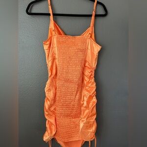 Shiny Orange Satin Ruched Wild Fable Dress