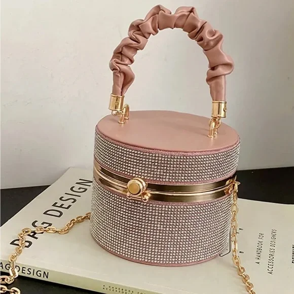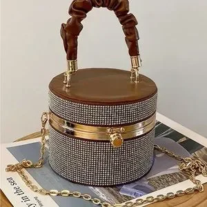Shiny Rhinestone Cylinder Chain Crossbody Bag