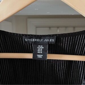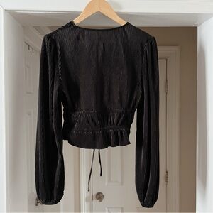 Shiny ribbed long sleeve peplum top from Sincerely Jules.