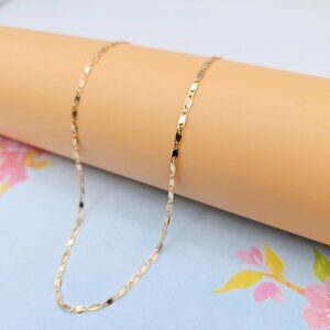 Delicately twisted rose gold necklace with a reflective finish that catches the light beautifully, perfect for elegant daily wear.