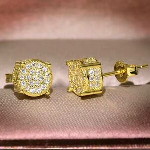 Shiny Round Zircon Hip Hop stud Paved Shiny Silver Stud CZ Silver Cubic Zircon
