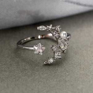 "Shiny Star Moon Design Silver Rose Gold Plated CZ Ring for Women, HA4420