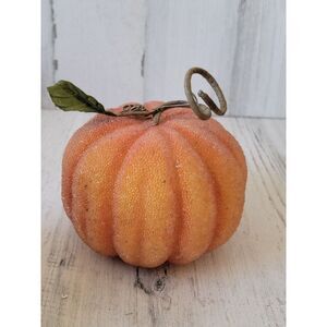 Shiny orange pumpkin harvest fall Halloween decor figure