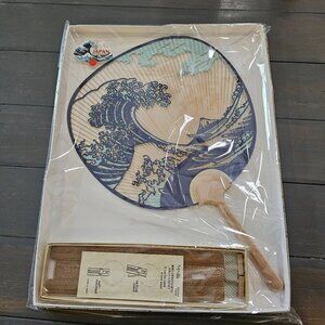 Shiomi Dansen Hokusai Wave Kyoto Uchiwa Fan With Bamboo Stand
