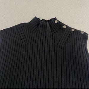 St. John Sleeveless Mock Neck Sweater – Black, Gold Buttons, Size L (NWOT)