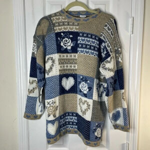 Ship n’ shore M Vintage 80’s tunic sweater rose heart argyle pullover
