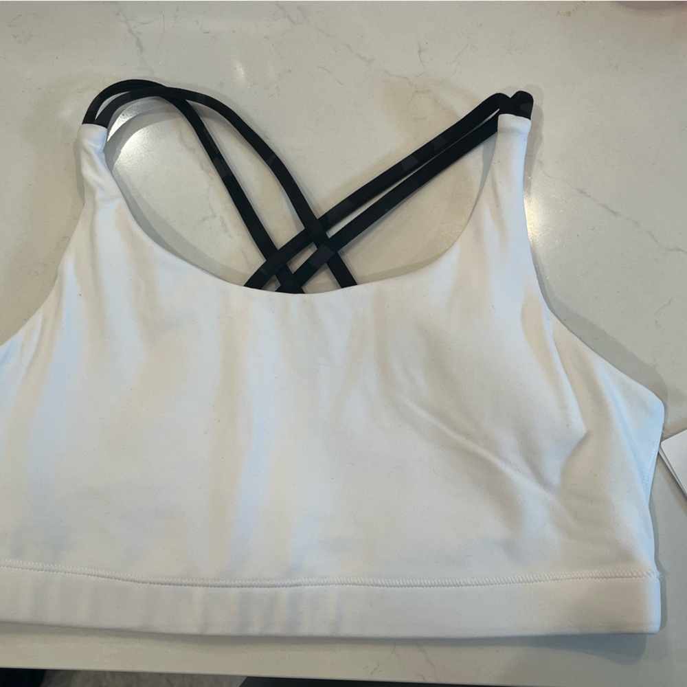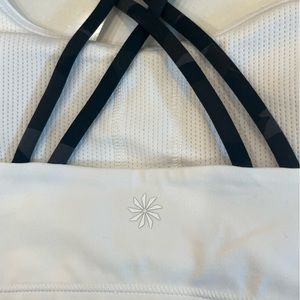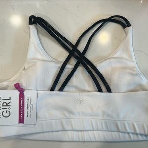 Athleta girl-NWT/printed upbeat bra 2.0/padded white bra with black camo straps/comes with athleta girl hair tie/size YOUTH XXL/16