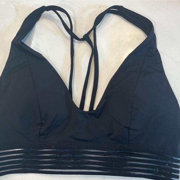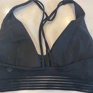 Lululemon-size 4/great condition/padded black strappy athletic bra/V neck/striped elastic detail