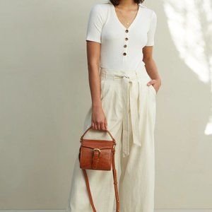THE MARLA PANTS WILL KEEP YOU COOL, COMFORTABLE AND EFFORTLESSLY PUT-TOGETHER. CRAFTED IN A FLATTERING WIDE-LEG SILHOUETTE FROM OUR GOTS-CERTIFIED BLEND. THEY COME WITH A REMOVABLE WAIST TIE WITH CONTRAST STITCH DETAIL THAT ACCENTUATES THE HIGH-RISE WAIST. WEAR YOURS WITH THE MATILDA BODYSUIT AND THE MINKA TOTE.