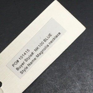New with tags, Shira Melody brand, magnolia style, necklace with turquoise blue beads, white marble beads and royal blue beads, white tassel, still in wrapping, as shown, silvertone closure and chain findings.PO #101415 Buyer Style #: NK 100 Blue. Style name: Magnolia blue