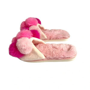Shiraleah Carina Slippers Pink Pom Pom Slide Slip-on Fuzzy Soft Hard Bottom Shoes