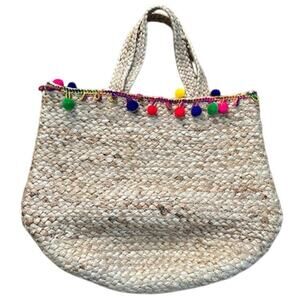 Shiraleah Chicago Woven Jute Tote Bag with Pom Pom Trim Francesca’s NWT