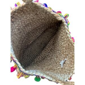 This natural jute tote by Shiraleah Chicago features a festive multicolor pom pom and yarn trim, braided handles, and a spacious open interior. A fun and functional option for the beach, market, or summer outings. Please note: some pom poms are missing along the top trim (see photos). New with original Francesca’s tag.