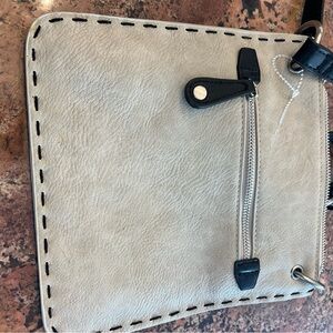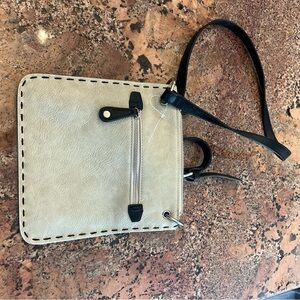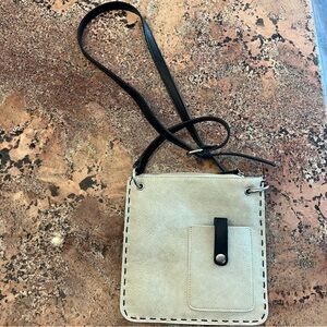 Stylish Shiraleah crossbody bag. Cream body with black accents. Front pocket with snap closure. Perfect for everyday use. Great used condition! See pics